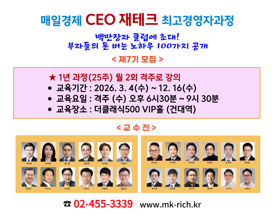 ★ 매일경제 CEO 재테크 최고경영자과정 제7기 모집★